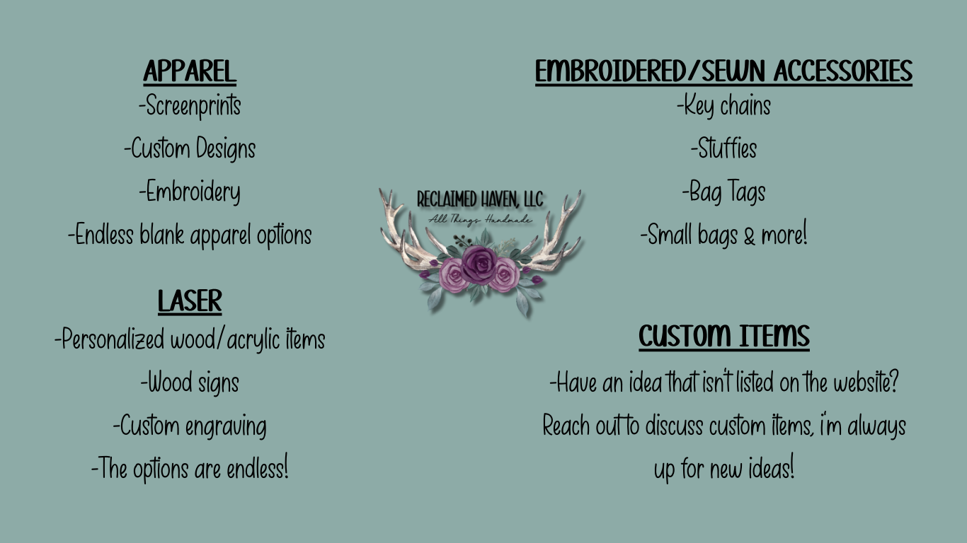 ALL ITEMS ARE HANDMADE AND MADE TO ORDER UNLESS NOTED OTHERWISE.